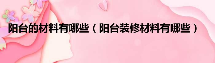 阳台材料可用的材料是:一、窗户材料系列,该系列中以窗户为主,只是材料包含断桥铝,实木,塑钢,铝合金等几种;二、地面材料系列,地面材料有鹅卵石,大理石,瓷砖,防腐木等几种;三、墙面材料系列,该系列中包含墙砖,乳胶漆,仿古砖,马赛克,防腐木等;四、辅助材料系列,其中有水泥,沙子,防水材料,管件电线。