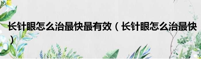 长针眼怎么治最快最有效(长针眼怎么治最快)