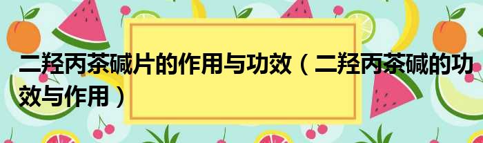 二羟丙茶碱片的作用与功效(二羟丙茶碱的功效与作用)