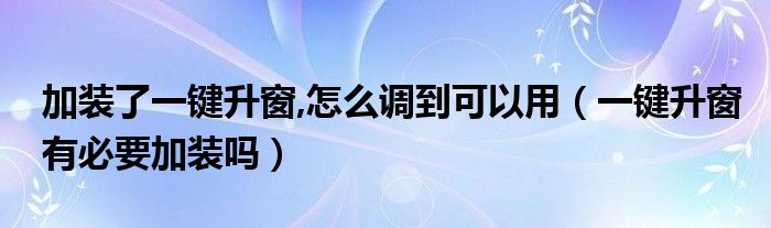 加装了一键升窗,怎么调到可以用(一键升窗有必要加装吗)
