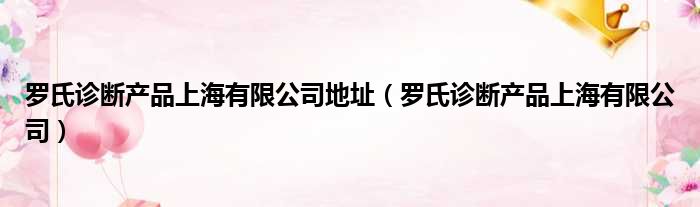 罗氏诊断产品上海有限公司地址(罗氏诊断产品上海有限公司)