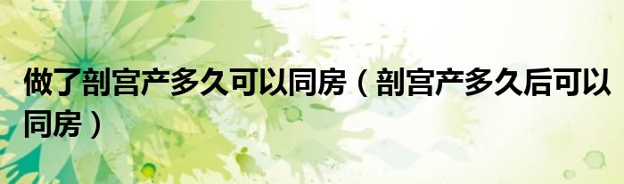 做了剖宫产多久可以同房(剖宫产多久后可以同房)