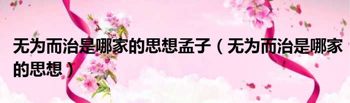 无为而治是哪家的思想孟子(无为而治是哪家的思想)