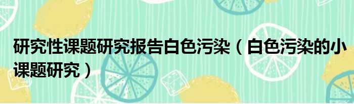 研究性课题研究报告白色污染(白色污染的小课题研究)