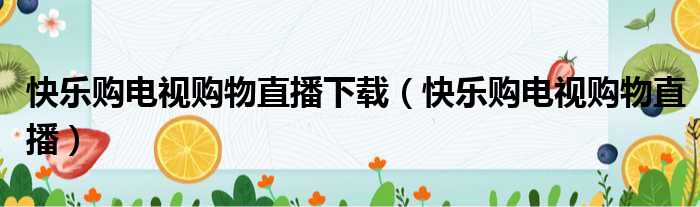 快乐购电视购物直播下载(快乐购电视购物直播)
