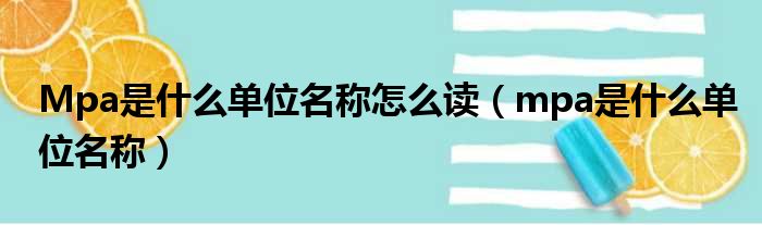 Mpa是什么单位名称怎么读(mpa是什么单位名称)