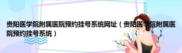 贵阳医学院附属医院预约挂号系统网址(贵阳医学院附属医院预约挂号系统)
