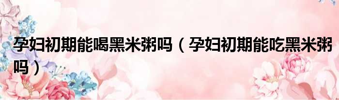 孕妇初期能喝黑米粥吗(孕妇初期能吃黑米粥吗)