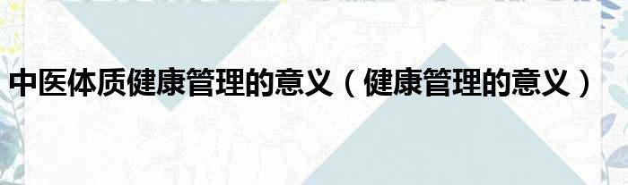 导读 大家好,今天小六子来为大家解答以下的问题,关于中医体质健康管理的意义,健康管理的意义这个很多人还不知道,现在让我们一起来看看吧!1、