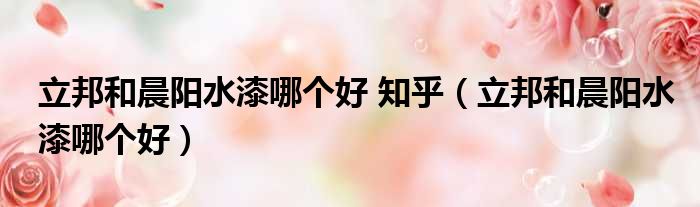 立邦和晨阳水漆哪个好 知乎(立邦和晨阳水漆哪个好)