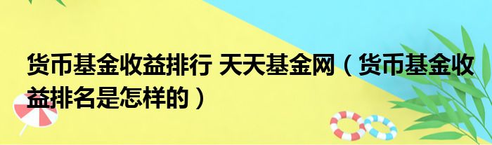 货币基金收益排行 天天基金网(货币基金收益排名是怎样的)