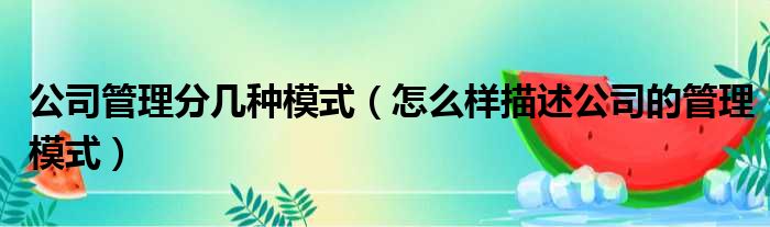 公司管理分几种模式(怎么样描述公司的管理模式)