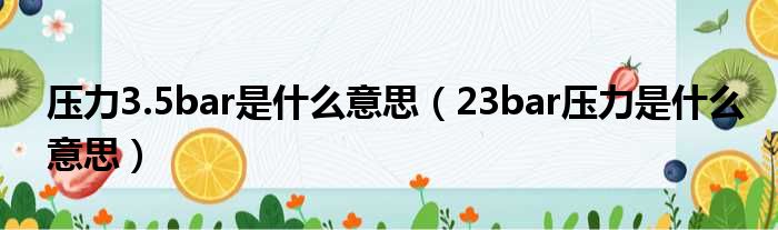 压力3.5bar是什么意思(23bar压力是什么意思)
