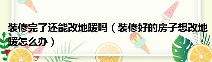 装修完了还能改地暖吗(装修好的房子想改地暖怎么办)