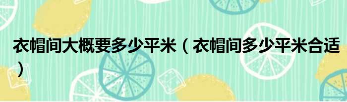 衣帽间大概要多少平米(衣帽间多少平米合适)