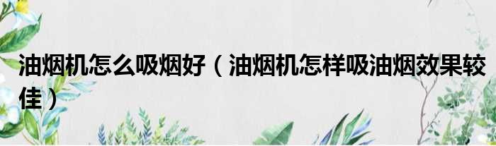 油烟机怎么吸烟好(油烟机怎样吸油烟效果较佳)
