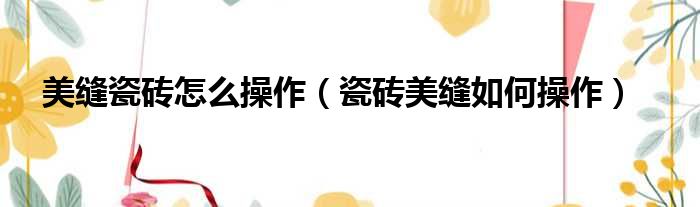美缝瓷砖怎么操作(瓷砖美缝如何操作)