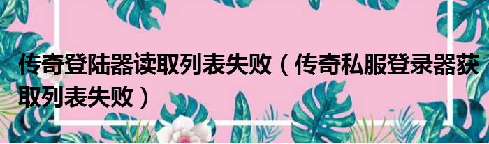 导读 大家好,今天小六子来为大家解答以下的问题,关于传奇登陆器读取列表失败,传奇私服登录器获取列表失败这个很多人还不知道,现在让我们一起