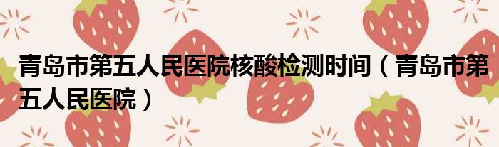 青岛市第五人民医院核酸检测时间(青岛市第五人民医院)
