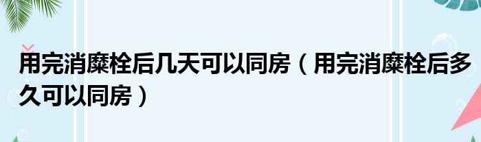 用完消糜栓后几天可以同房(用完消糜栓后多久可以同房)