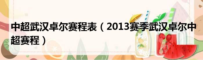 中超武汉卓尔赛程表(2013赛季武汉卓尔中超赛程)