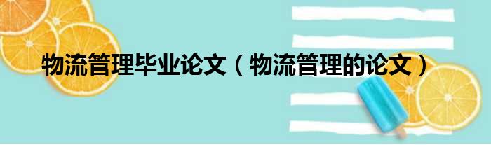 大家好,今天小六子来为大家解答以下的问题,关于物流管理毕业论文,物流管理的论文这个很多人还不知道,现在让我们一起来看看吧!