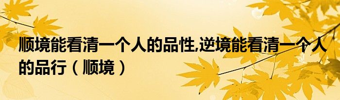 导读 大家好,今天小六子来为大家解答以下的问题,关于顺境能看清一个人的品性,逆境能看清一个人的品行,顺境这个很多人还不知道,现在让我们一起