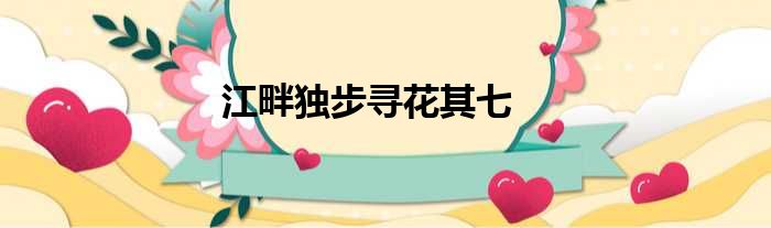 你要七首? 江畔独步寻花(其一) 江上被花恼不彻,无处告诉只颠狂。 走觅南邻爱酒伴,经旬出饮独空床。 江畔独步寻花(其二) 稠花乱蕊畏江滨,行步欹危实怕春。 诗酒尚堪驱使在,未须料理白头人。 江畔独步寻花(其三) 江深竹静两三家,多事红花映白花。 报答春光知有处,应须美酒送生涯。 江畔独步寻花(其四) 东望少城花满烟,百花高楼更可怜。 谁能载酒开金盏,唤取佳人舞绣筵。 江畔独步寻花(其五) 黄师塔前江水东,春光懒困倚微风。 桃花一簇开无主,可爱深红爱浅红。 江畔独步寻花(其六) 黄四娘家花满蹊,千朵万朵压枝低。 留连戏蝶时时舞,自在娇莺恰恰啼。 江畔独步寻花(其七) 不是爱花即肯死,只恐花尽老相催。 繁枝容易纷纷落,嫩叶商量细细开。