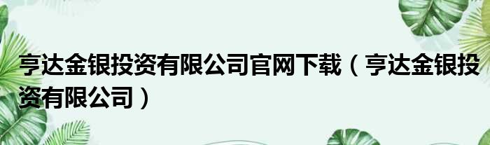 大家好,今天小六子来为大家解答以下的问题,关于亨达金银投资有限公司官网下载,亨达金银投资有限公司这个很多人还不知道,现在让我们一起来看看吧!