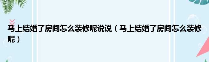 马上结婚了房间怎么装修呢说说(马上结婚了房间怎么装修呢)