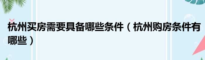 杭州买房需要具备哪些条件(杭州购房条件有哪些)