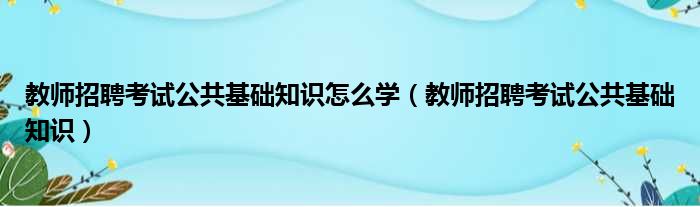 教师招聘考试公共基础知识怎么学(教师招聘考试公共基础知识)