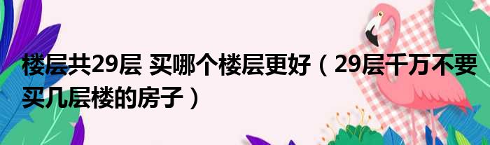 楼层共29层 买哪个楼层更好(29层千万不要买几层楼的房子)