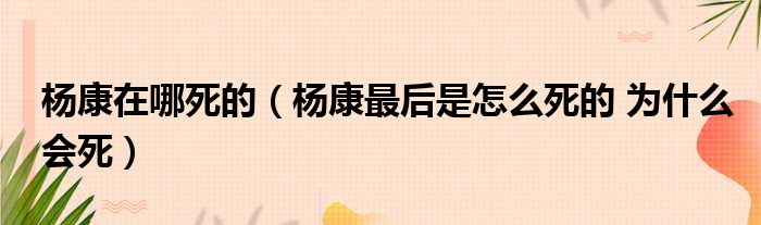 导读 大家好,今天小六子来为大家解答以下的问题,关于杨康在哪死的,杨康最后是怎么死的 为什么会死这个很多人还不知道,现在让我们一起来看看