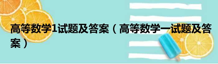 导读 大家好,今天小六子来为大家解答以下的问题,关于高等数学1试题及答案,高等数学一试题及答案这个很多人还不知道,现在让我们一起来看看吧!