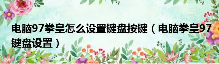 电脑97拳皇怎么设置键盘按键(电脑拳皇97键盘设置)