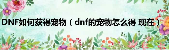 DNF如何获得宠物(dnf的宠物怎么得 现在)