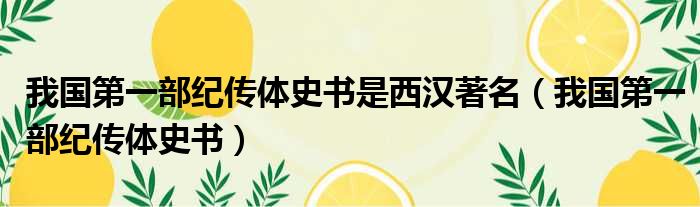 我国第一部纪传体史书是西汉著名(我国第一部纪传体史书)