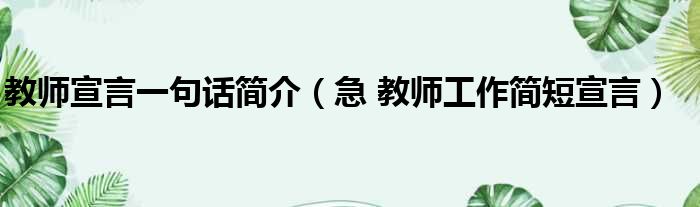 导读 大家好,今天小六子来为大家解答以下的问题,关于教师宣言一句话简介,急 教师工作简短宣言这个很多人还不知道,现在让我们一起来看看吧!1