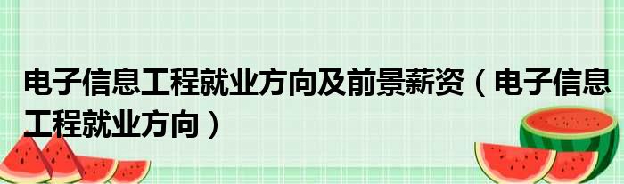 电子信息工程就业方向及前景薪资(电子信息工程就业方向)