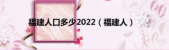 大家好,今天小六子来为大家解答以下的问题,关于福建人口多少2022,福建人这个很多人还不知道,现在让我们一起来看看吧!