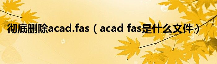导读 大家好,今天小六子来为大家解答以下的问题,关于彻底删除acad fas,acad fas是什么文件这个很多人还不知道,现在让我们一起来看看吧!1、