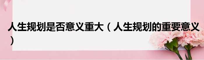 大家好,今天小六子来为大家解答以下的问题,关于人生规划是否意义重大,人生规划的重要意义这个很多人还不知道,现在让我们一起来看看吧!