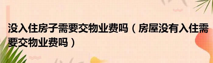 没入住房子需要交物业费吗(房屋没有入住需要交物业费吗)