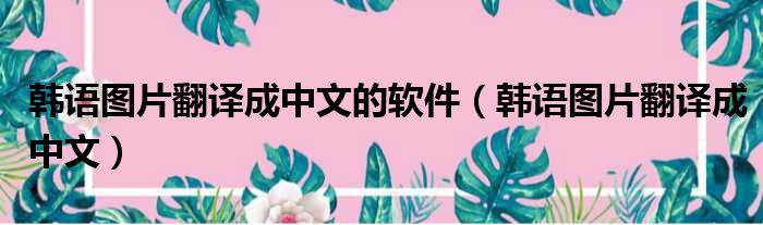 韩语图片翻译成中文的软件(韩语图片翻译成中文)