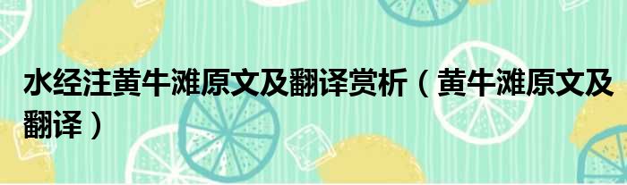水经注黄牛滩原文及翻译赏析(黄牛滩原文及翻译)