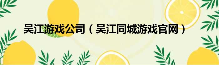 大家好,今天小六子来为大家解答以下的问题,关于吴江游戏公司,吴江同城游戏官网这个很多人还不知道,现在让我们一起来看看吧!