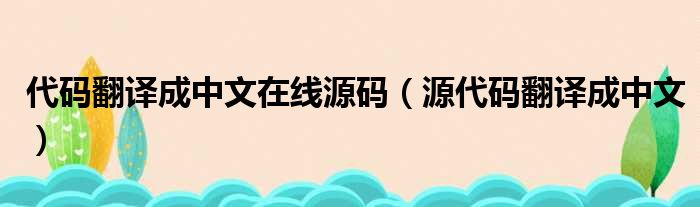 导读 大家好,今天小六子来为大家解答以下的问题,关于代码翻译成中文在线源码,源代码翻译成中文这个很多人还不知道,现在让我们一起来看看吧!1