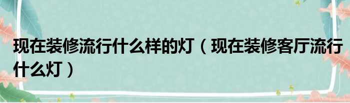 现在装修流行什么样的灯(现在装修客厅流行什么灯)
