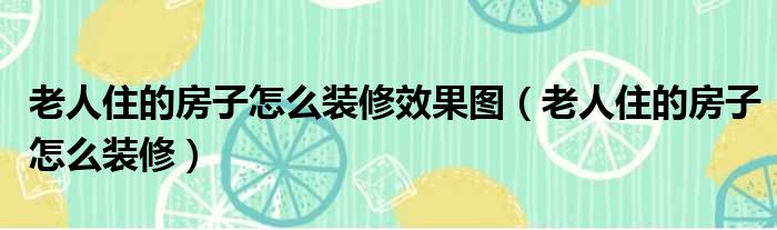 老人住的房子怎么装修效果图(老人住的房子怎么装修)